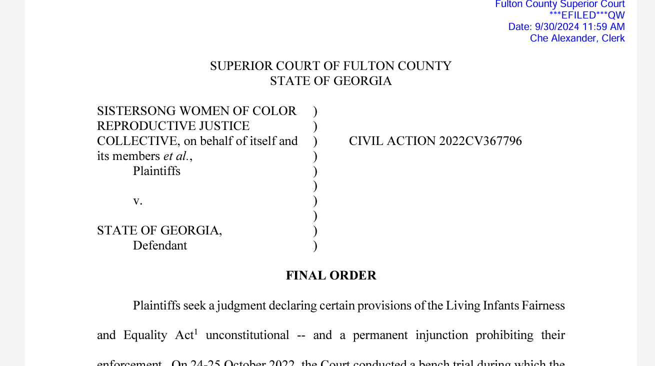 Fulton County Superior Court Judge Robert McBurney issued the order on Monday to stop Georgia’s Living Infants Fairness and Equality Act, or LIFE Act, which bans abortions past six weeks. The decision came after the state had been in the news recently after ProPublica reported that two women had died as a result of not being able to obtain medically necessary abortions following the law’s enactment.